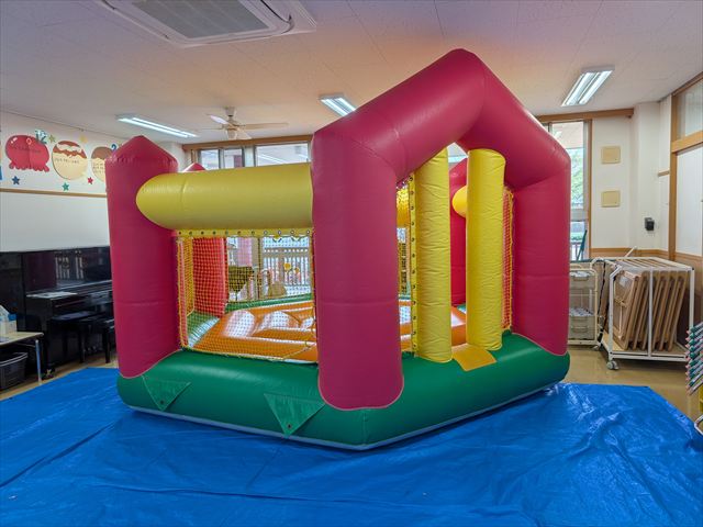 今日は春のび最終日。お天気が悪かったのでエアトランポリンで体を動かしました。
